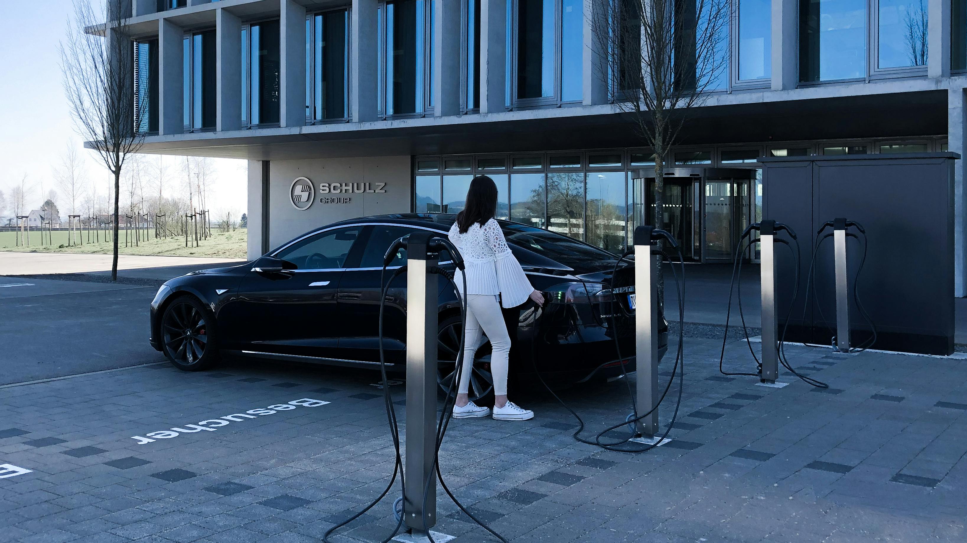 Management holding company “Schulz Group GmbH” installs 22 charging stations for electric cars at the head office in Ravensburg-Erlen.